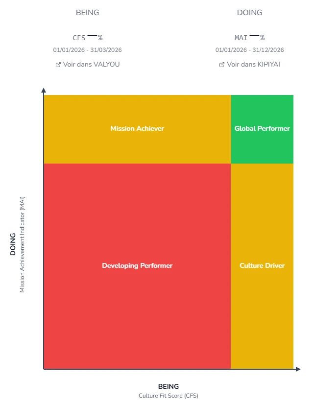 VALYOU answers : Are my teams embodying who we want to be ? KIPIYAI answers : Are my teams truly performing ?